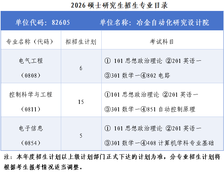 冶金自動化研究設計院2026年全國碩士研究生招生簡章